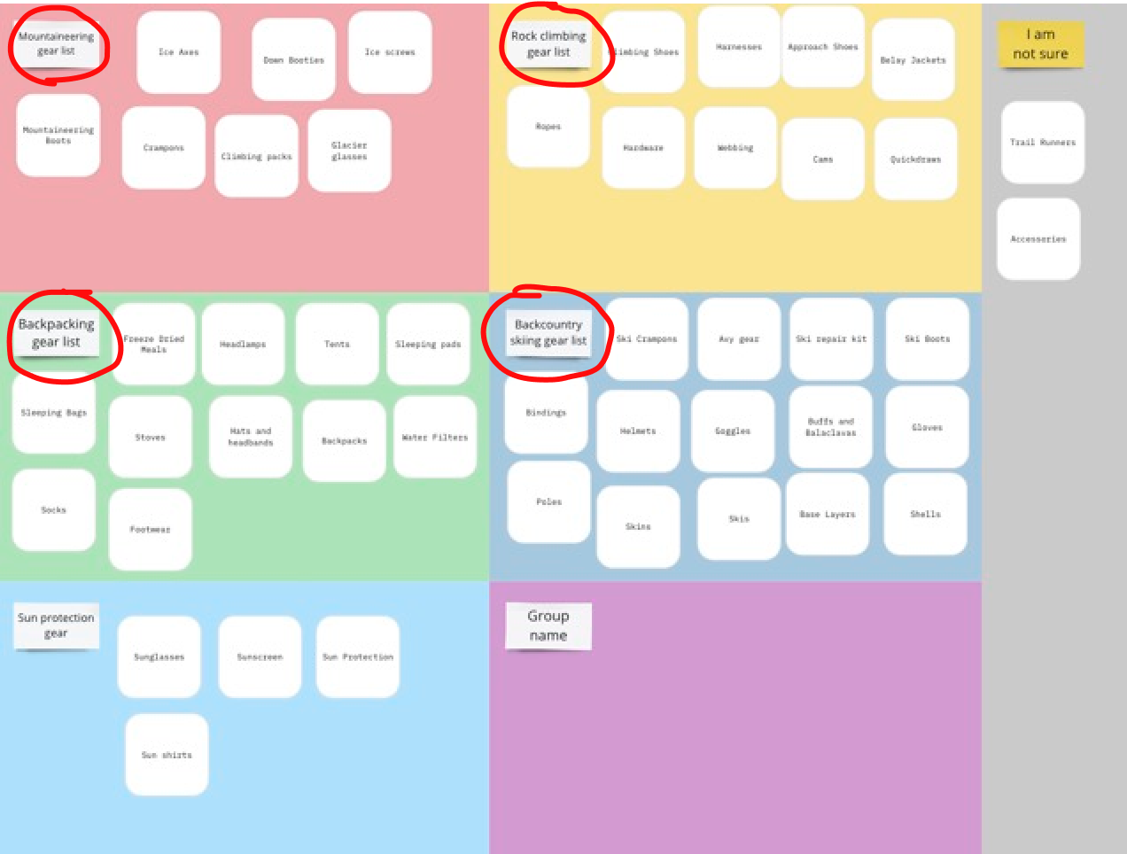 Here a user used “mountaineering gear, rock climbing gear, backcountry skiing and backpacking gear” to organize items.