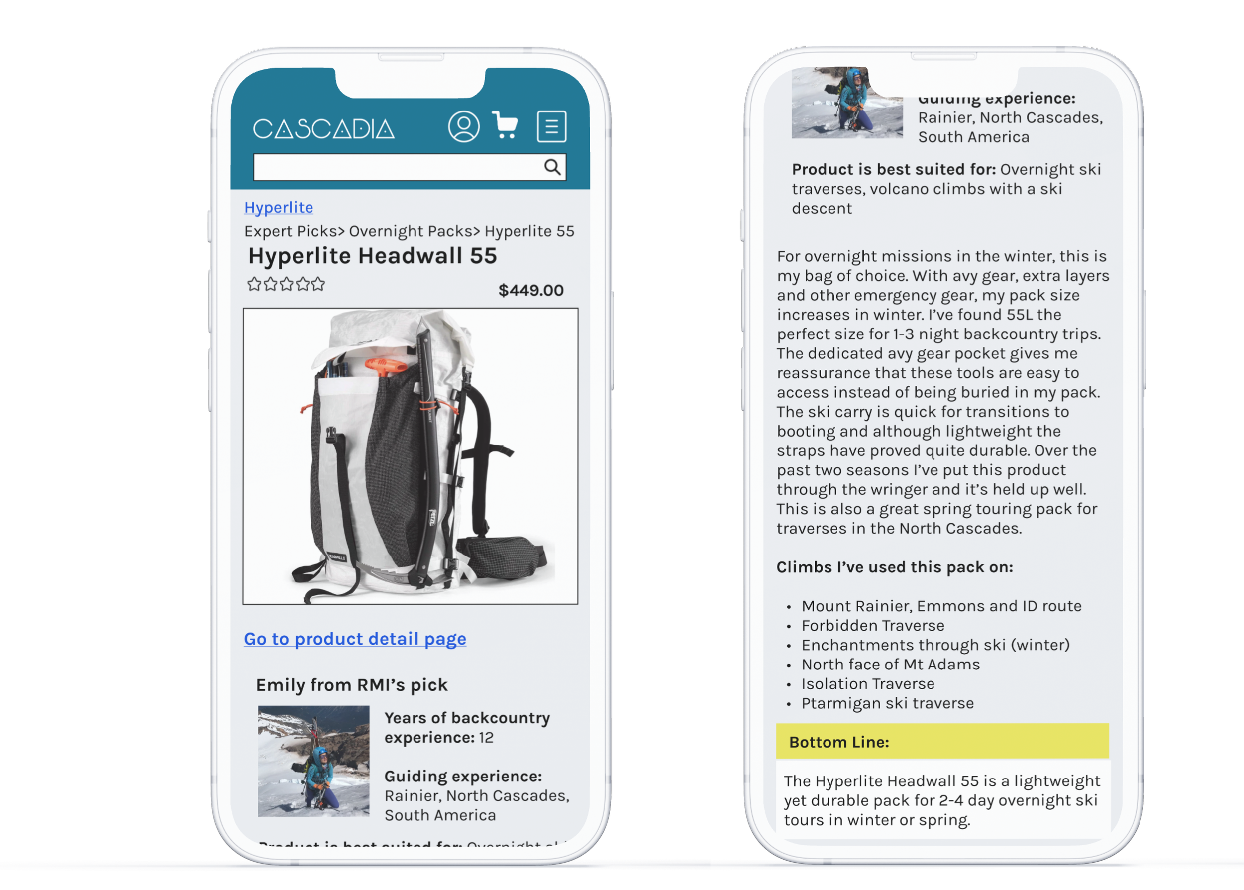 Cascadia is a concept for an e-commerce outdoor gear site. With several volcanoes, year-round glacier access and the North Cascades, Washington provides endless opportunities for the recreational athlete to test themselves in challenging environments.